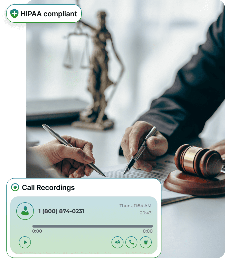 HIPAA compliance is crucial for practices that handle health law, personal injury, or other regulated areas. Our cloud-based business phone system offers worry-free HIPAA compliance through a partnership with a leading solution developed by former auditors and compliance experts.