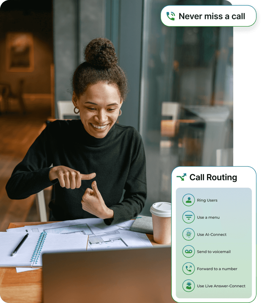 Our cloud-based business phone system allows you to work with clients and conduct interviews from anywhere, on any device.