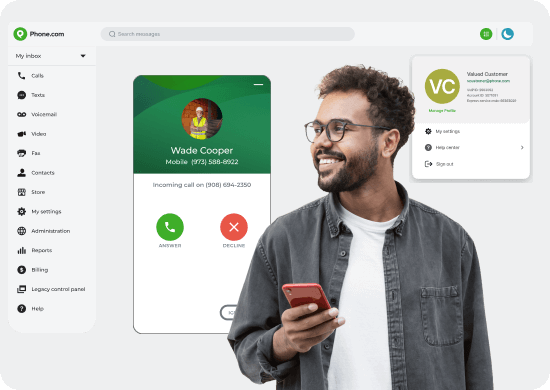Phone.com offers features like call forwarding, voicemail transcription, and automated attendants that personal mobile phones typically lack. In addition, as your business grows, using a personal phone may hinder your ability to scale and manage multiple lines or extensions effectively. Phone.com grows with your business.