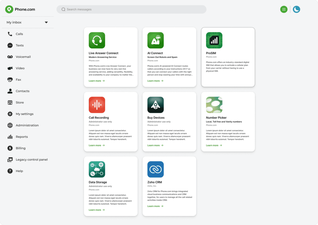 First, you must signup for one our business phone systems plans. Once you do, you can add as many ProSIMs to your account as you like by accessing the Phone.com Store in My.Phone.com.